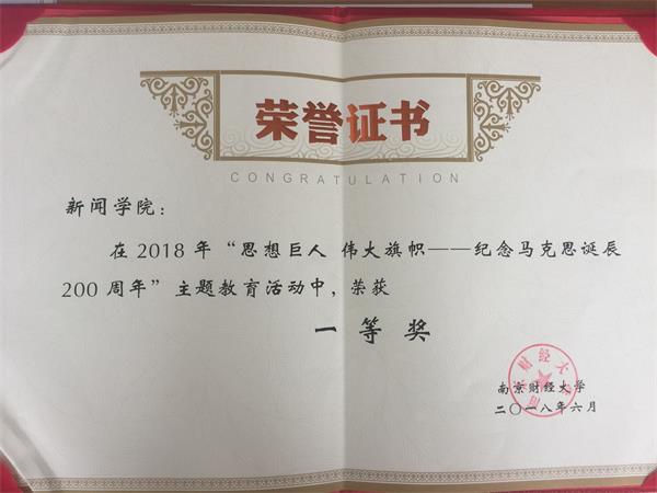 公司在“思想巨人伟大旗帜——纪念马克思诞辰200周年”主题教育活动中获一等奖