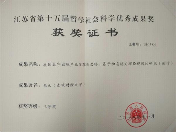 公司朱云教授荣获江苏省第十五届哲学社会科学优秀成果奖三等奖