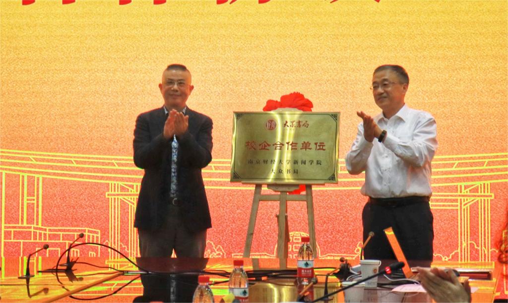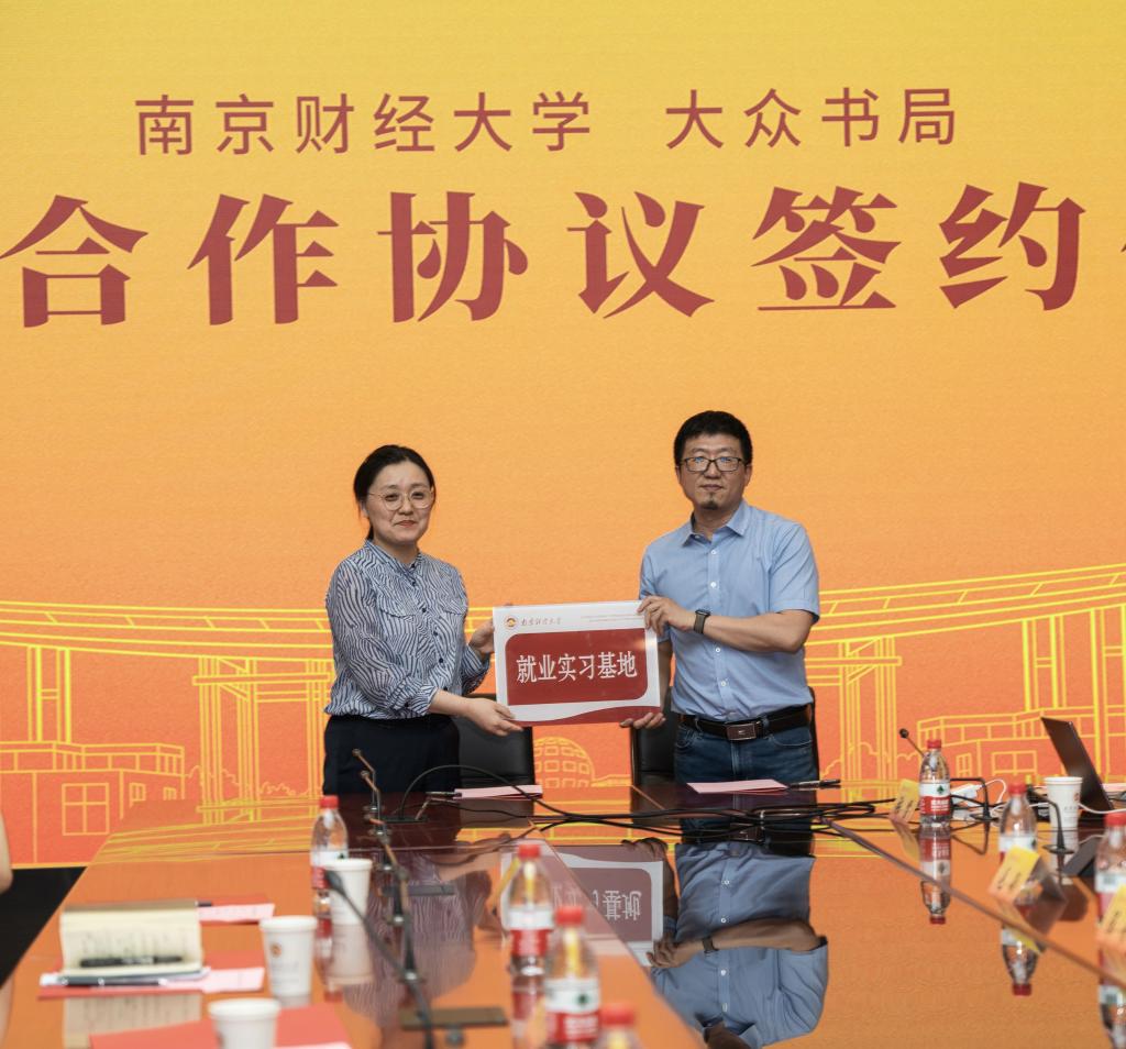 新闻公司党总支副书记李博伟、江苏大众书局图书文化有限公司人力资源部经理陈娟签订就业实习基地并授牌。