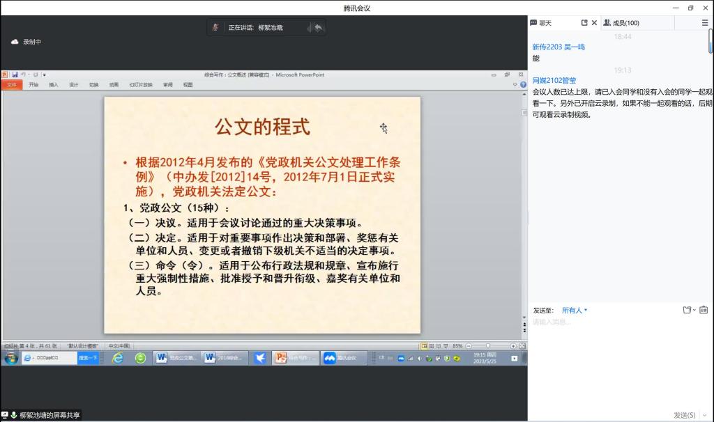 陈协老师以应用文写作为重点,分公文程式、请示写作和批复写作三部分,详细讲解不同形式应用文的写作方法。针对不同类型的应用文,陈老师专门制作模板,一边细致讲解注意事项,一边对照模板进行说明,更加直观清晰地向同学们传授知识。