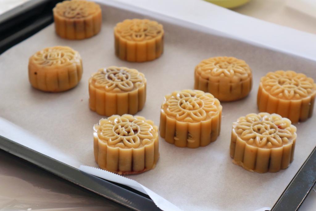 月饼制作正式开始后,同学们自己动手,互相协作,彼此交流,专注地揉着面团,包着馅料。在一片欢声笑语、和谐友爱的氛围中,一个个月饼成型了,最后为月饼刷上蛋液,放置烤箱烘烤,教工小家的空气中弥漫着月饼香甜的味道。