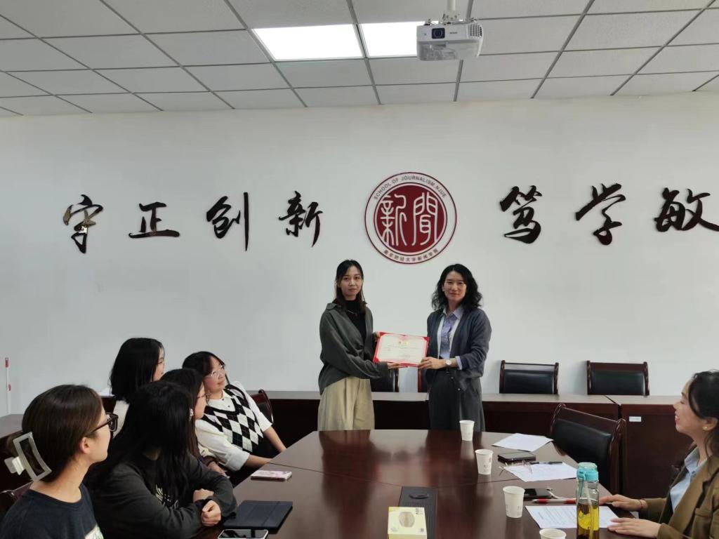 新闻公司党总支书记陈丹为陶佳洁同志颁发聘书并总结讲话,并对百舸员工党支部顺利换届表示祝贺。陈丹书记表示,党支部在具体业务上接受必一运动和校团委的联合指导,她对校团委为党建工作联盟和百舸员工党支部创建做出的贡献表示感谢。作为百舸员工党支部政治辅导员,陈丹书记对支部工作进行了相关部署,要求支部进一步开拓创新,为公司高质量党建贡献基层智慧,希望支部员工党员不仅要具有较强的政治素质与组织宣传方面的业务能力,还要当好先锋模范,发挥榜样效应。