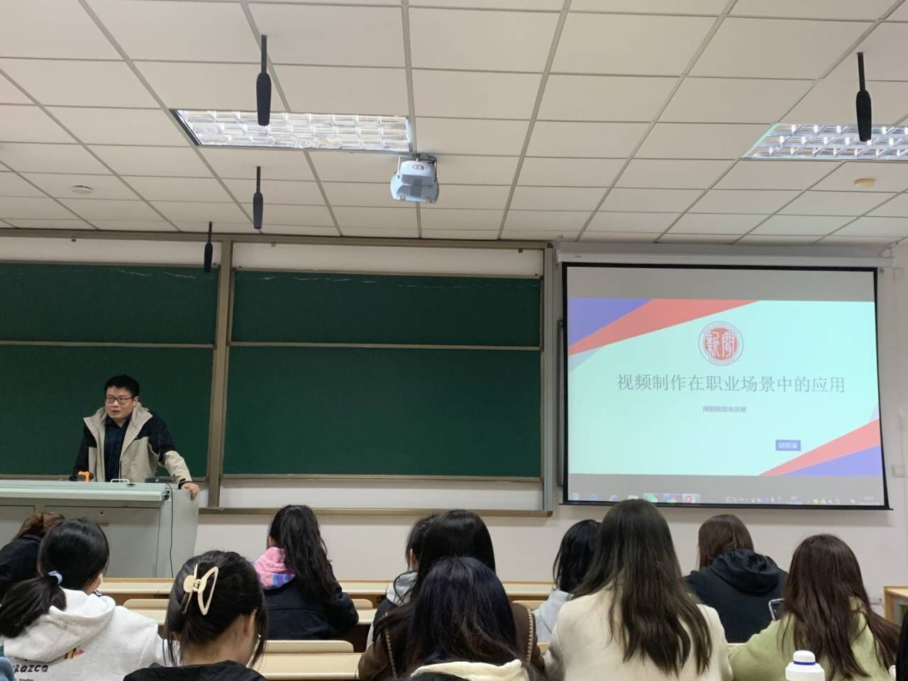 11月10日上午,公司在仙林校区德正楼209教室举办“视频制作在职业场景中的应用——南财就创业大讲堂活动”主题讲座。讲座由公司网媒系教师邱其濛主讲,21级、22级、23级本科生参加。