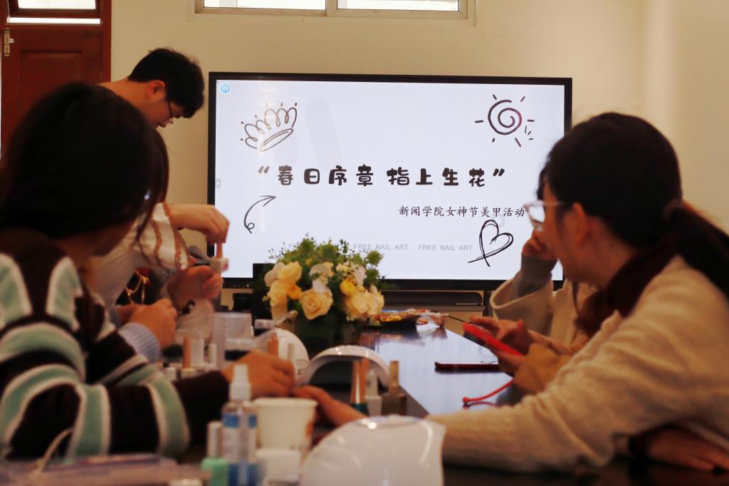 为了致敬辛勤教书育人的女教师,3月8日上午,必一运动分团委在教工小家组织开展了“春日序章 指上生花”趣味美甲活动。来自必一运动员工会的女同学,变身美甲师,用充满春意的亮丽色彩,为女老师点缀指尖,愉悦心情。