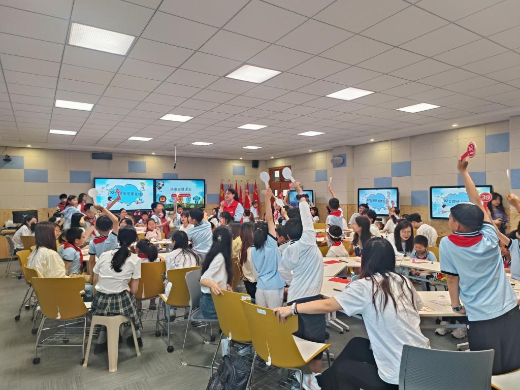 活动伊始,小朋友们在志愿者的带领下来到博文楼101,体验了一场别开生面的金融小课堂。三位志愿者为小朋友们讲解了货币的前世今生和如何正确使用零花钱,在讲解的过程中,小朋友们积极踊跃地与志愿者互动,提出自己的疑问和想法。“纸上得来终觉浅,绝知此事要躬行。”在理论知识讲解完毕后,便进入了拍卖会环节。小朋友们可以用自己获得的教学纸币参加拍卖,竞拍心仪物品。小朋友们用稚嫩的小手一次次举起牌子参与竞拍,现场气氛热烈,准备的拍品很快就被“一抢而空”。金融小课堂的最后,小朋友们在卡片上一笔一划地写下了自己的感受,“我学会了很多。”“这个活动很有趣,我下次还要参加!”“希望多点这样的活动。”“我长大之后要参加一场真正的拍卖会!”小朋友们用最简单朴实的话语表达自己的感受,却更体现出了他们的天真单纯和本次活动的意义所在。