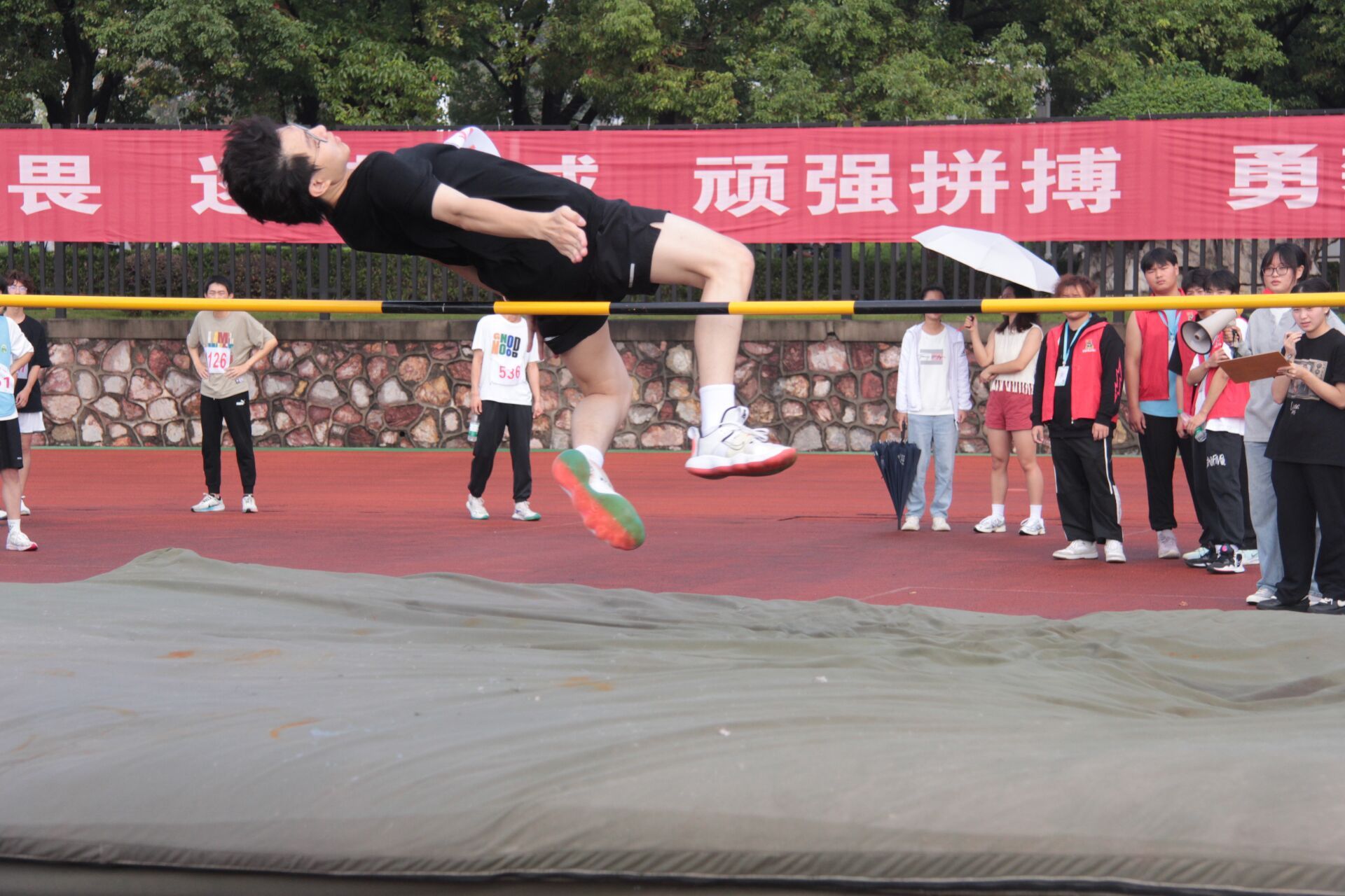 延伸的跑道凝聚了新闻学子的坚定、执着,耐力与希望;遥远的终点线闪耀着新闻学子的力量、信念,拼搏与奋斗;高高的跳杆上承载了新闻学子的期盼、毅力,不懈与顽强。