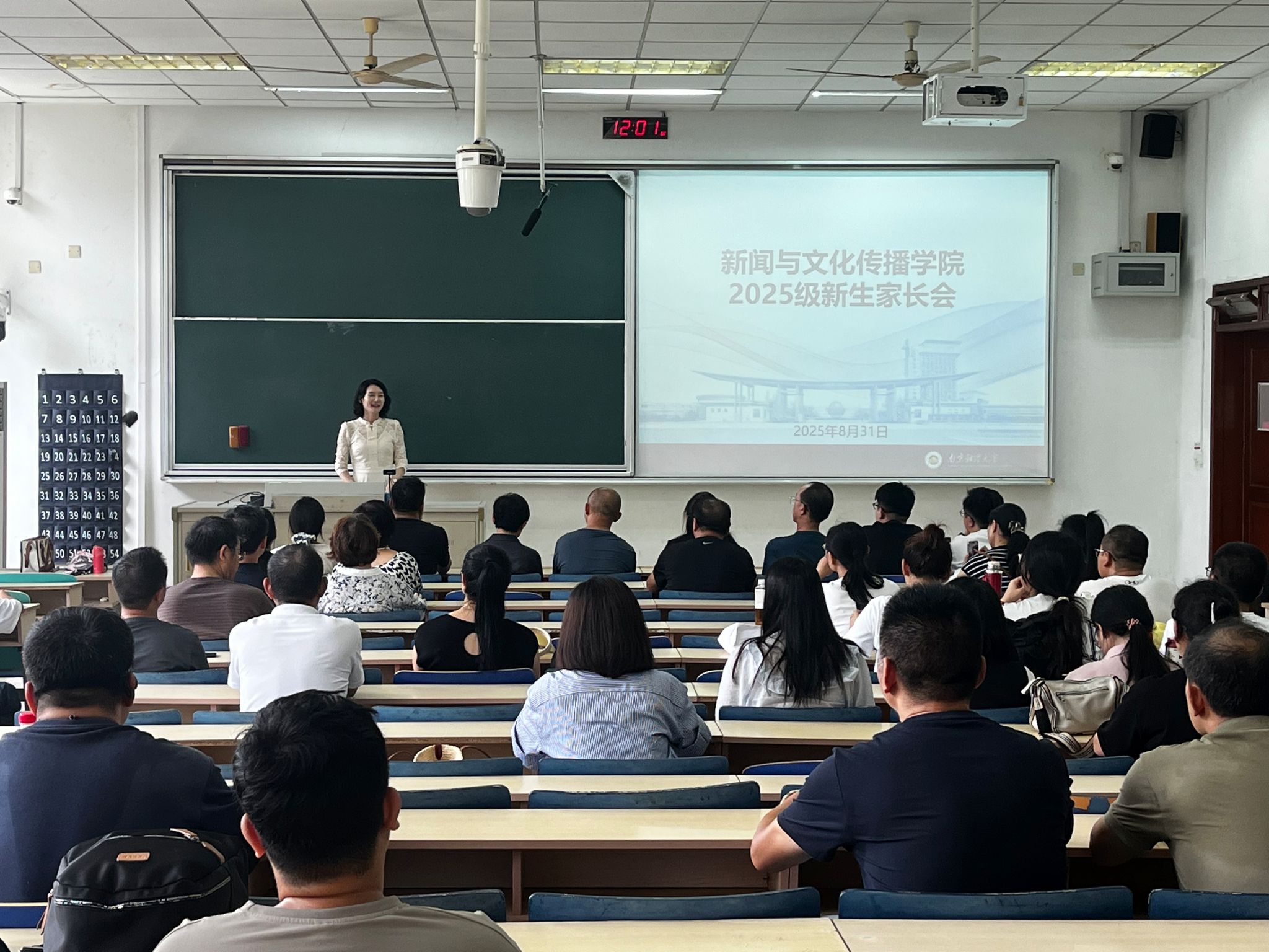 公司青年志愿者在公司报到处、西苑宿舍区为新生们热心服务,公司党委书记陈丹、经理刘泱育在迎新现场看望新生及家长,与大家深入交流。中午在德正楼101教室,公司组织召开新生家长会。陈丹书记代表公司对新生表达了热烈欢迎和诚挚祝福,刘泱育经理介绍了公司发展和人才培养情况,挂职副经理、中文系主任王华,新闻系主任曹志伟,网媒系主任夏羿等三位老师分别介绍了专业相关情况,并围绕家长关心的问题进行了详细的解答和交流。