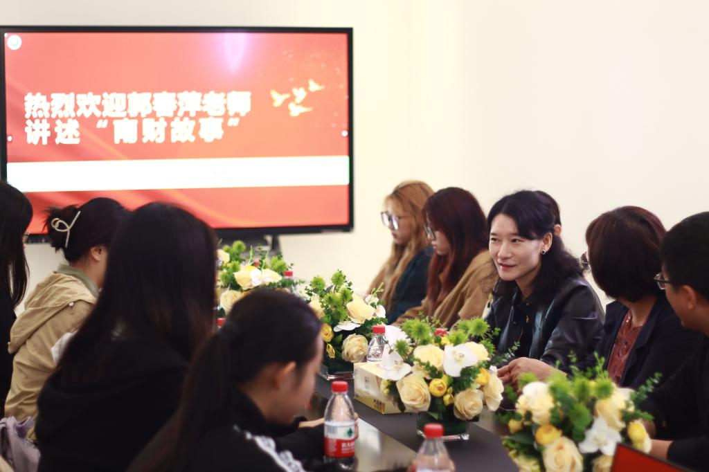 陈丹书记总结说,郭老师的故事是公司发展的一个缩影,每一个经历过的财大人都深有同感,我们每个人都是在社会变迁的过程中,幸运地被这个伟大的时代所托举,在奋斗中实现了个体成长和个人价值。陈丹书记建议同学们,在学习生活中遇到困难不要焦虑,主动面对,秉承南财人抢抓机遇敢为人先的奋斗精神,从历史中汲取前进的动力,取得新的进步与成绩,书写自己的南财故事。