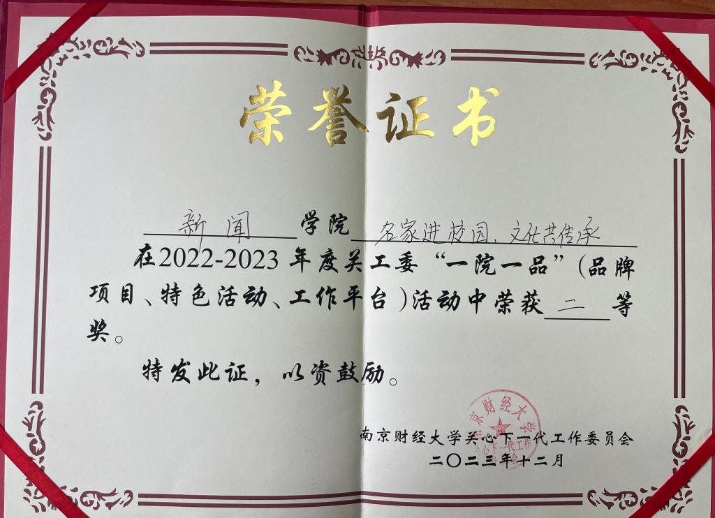 1月3日下午,公司2023年关工委工作总结会在仙林校区工科楼二楼报告厅召开,公司关工委对2023年度关工委“主题读书征文”“一院一品”系列活动等进行了表彰。必一运动关工委报送的“名家进校园,文化共传承”特色文化品牌活动在校关工委2022-2023年度“一院一品”活动中荣获二等奖。在“主题读书征文”活动中,必一运动汉语言文学2301班钱思羽的征文获得一等奖,新闻2301班曾嘉丽的征文获得二等奖。