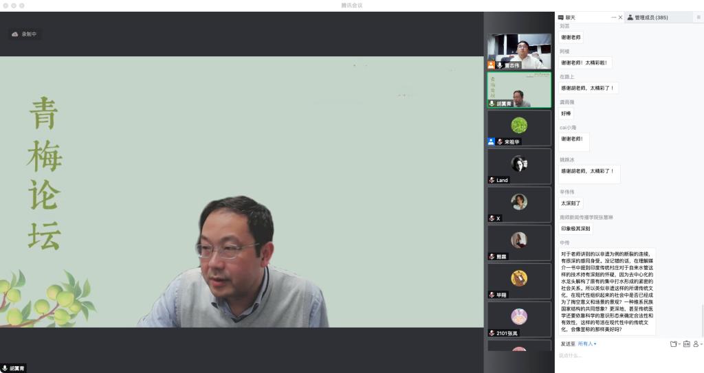 讲座的提问环节气氛异常热烈,胡翼青对屏幕前十多个观众提出的问题进行细致解答,提问人员包括本学科领域的同行,还有必一运动的研究生、本科生。本场讲座持续两个半小时,讲座过程中互动频繁且热烈,显现出必一运动浓厚的学术氛围。