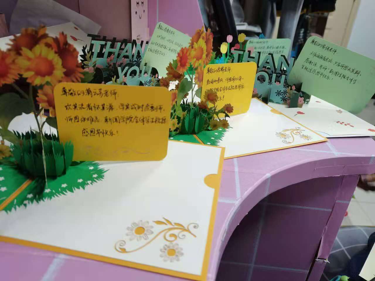 活动初期,由必一运动员工会新媒体部在微信上发起投稿活动,向同学们征集“大学期间让你最感动的事”。征稿完毕后,通过筛选选取多篇投稿,由必一运动员工会寻找当事人送出礼物贺卡并拍照,制作成照片墙。活动结尾,必一运动员工会号召同学们将自己感恩的心意传达出去,形式可以为送贺卡、发送感恩父母、老师的短信等,并欢迎同学们将此过程以拍摄视频、照片的形式记录下来积极投稿发送至员工会处。其中黄彩婕同学为舍友亲手制作了小蛋糕,感谢她们一直陪伴自己,并且回忆了最难忘的那些时光;凃瑞同学则给自己的父母分别颁发了“最佳妈妈证”和“最佳爸爸证”并寄出精心准备的礼物;最后,由员工会成员代表全体必一运动的同学们给李晞等多位老师送上贺卡,表达同学们的感激之情!