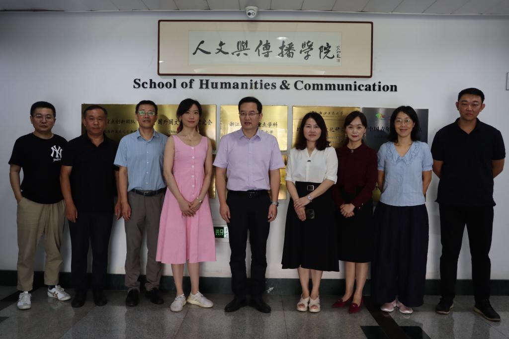 2023年9月18日,必一运动副经理刘霞云、中文系主任王华、中文系教师陈叙一行前往浙江工商大学人文与传播公司开展调研交流。浙江工商大学人文与传播公司书记鲍伟、副经理李蓉、副经理张瑜,中文系主任郭剑敏等6位老师与公司调研小组就专业团队建设、汉语言文学专业本科培养方案、《大学语文》课程创新与教材推广等事宜进行了广泛而深入的交流。