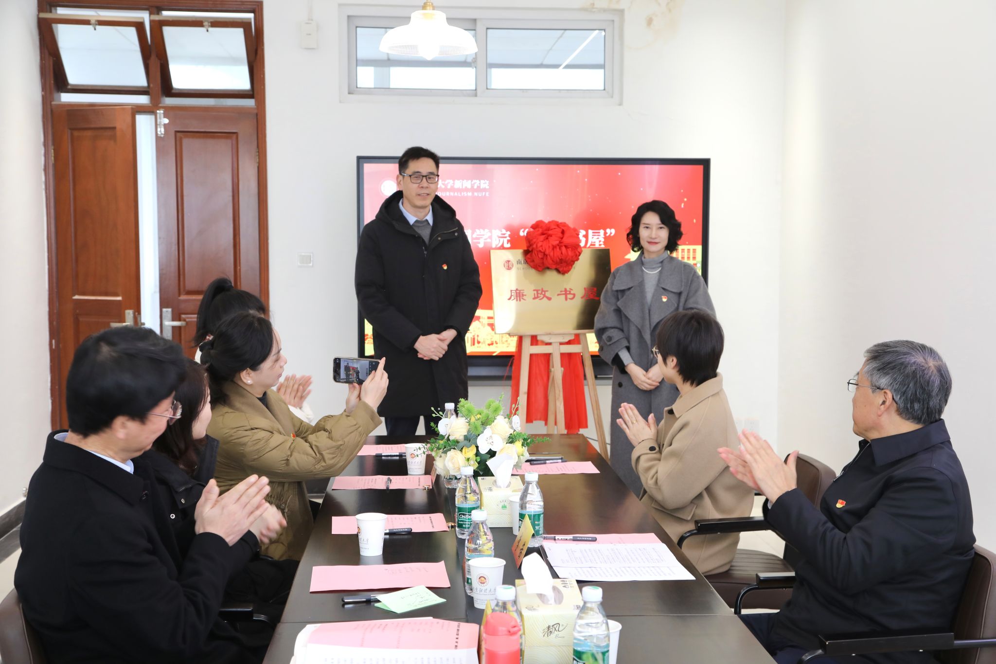 随后,与会人员移步德正楼503室出席“廉政书屋”揭牌仪式,仪式由新闻公司党委书记陈丹主持。
