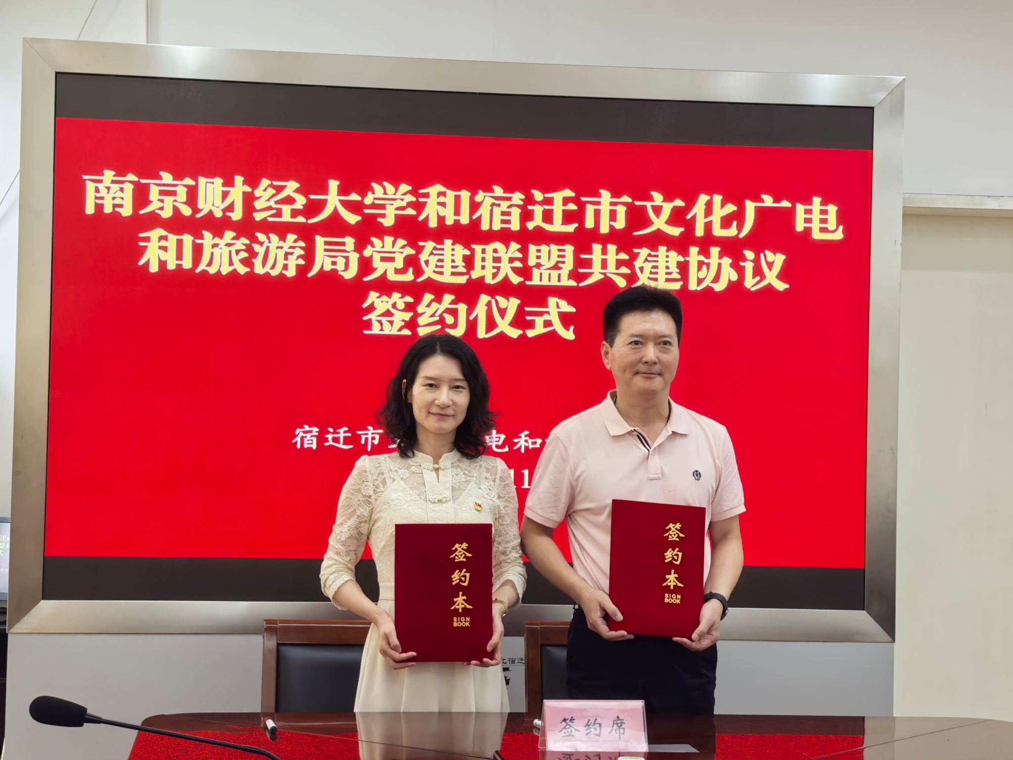 签约仪式上,刘冰副局长代表宿迁市文旅局对陈丹书记一行的到来表示欢迎,并从“重点工程建设、文旅融合推进、办好运河活动”三方面展示了宿迁市丰富的文化旅游资源和发展现状。陈丹书记介绍了公司在党建品牌、团队建设、人才培养等方面的基本情况,希望通过此次交流,为双方今后合作奠定坚实基础,依托宿迁市深厚的大运河历史文化底蕴,结合南财新闻传播学科优势,通过党建共建,实现资源互补、人才共育,助力地方文化传承。