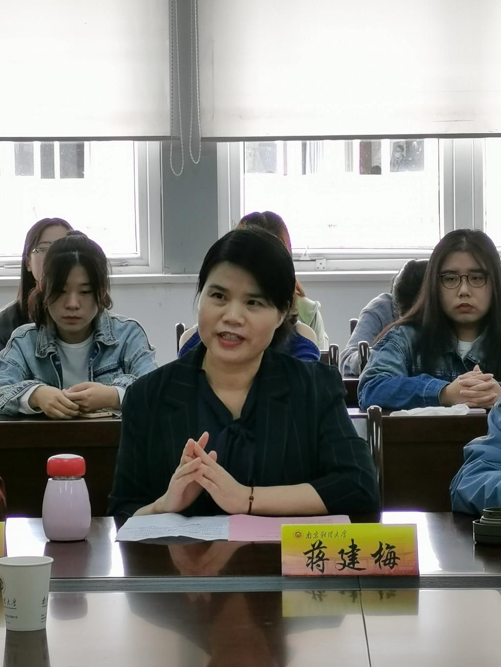 在听完两位公司领导发人深省的讲话后,导师代表朱云教授和蒋建梅教授也进行了各自的发言:朱云教授经验丰富,德高望重,以自身经历教导同学们只有加强自身心理建设才能更好地搞好学业,同时也提出了充分利用业余时间的概念;蒋建梅教授则较为谦虚,以自嘲式介绍开头,再结合自身实际跟同学们讲述自身的教学和学习经验,告诫同学们不能只看到地上的六便士,也应看到漫天的月光,同时鼓励大家走出仙林,体验南京的人文情怀。二位硕导的发言十分精彩,同学们都感到收获良多。